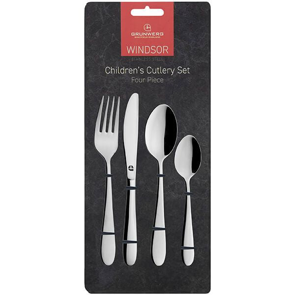 Grunwerg Windsor 18/0 4 Piece Childs Cutlery Set - Carded