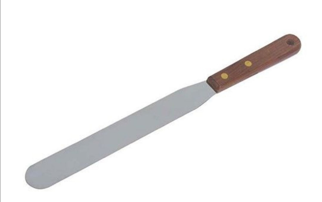 The Dexam Palette Knife 20.5cm is a versatile tool for spreading icing, buttercream, cream, frosting, fillings, and mashed potato. Its blunt edges make it safe for use by anyone. Crafted from durable stainless steel and featuring a wooden riveted handle, this knife measures 32 x 2.7cm overall.