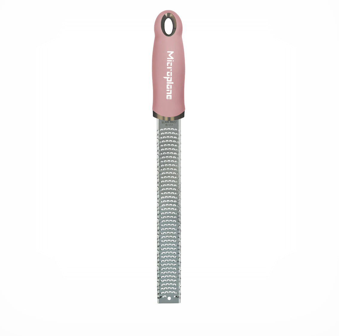Quickly and easily grate a variety of foods with this premium grater from Microplane. From hard cheeses, ginger and garlic to chocolate, truffles, nuts and more, this unique grater makes obtaining fine grates an effortless process. Food glides over the etched surface without getting stuck on the cutting edges for hassle-free prep. A strong stainless steel construction also makes the grater strong and durable, whilst a soft-touch handle ensures you can grate in total comfort.