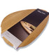 A 32cm pebble shaped wooden chopping board made from solid oak with a food-safe oiled finish. The natural wood material protects knife blades when preparing food.