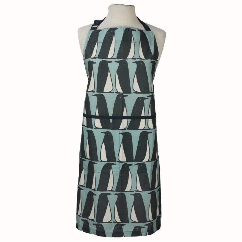 A charming new print from our Scion collection. Featuring the lovable Pedro the Penguin print in an Ice Grey, this 100% cotton apron measures 90 x 70cm in size while being machine wash. With an adjustable neck strap and two large front pockets, this apron has an extra lng wasit tie and comes in kraft packaging. CE marked.